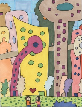 “No problem. Let’s go into the city.” as she held his hand.