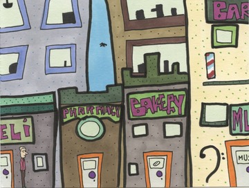 So, he walked down the street taking in the universe of shops and products available to him. On one block, there was a shoe store, a deli, a pharmacy, a bakery, a music store, a bicycle shop and a barber's shop. It was like any main strip in any galaxy, he figured. 2000 Earth dollars was more than enough for what he needed.